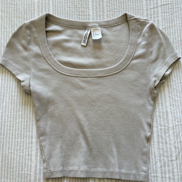 Stylish ribbed grey crop top with a scoop neck. Perfect for layering or wearing alone. Is a size small but fits like xs