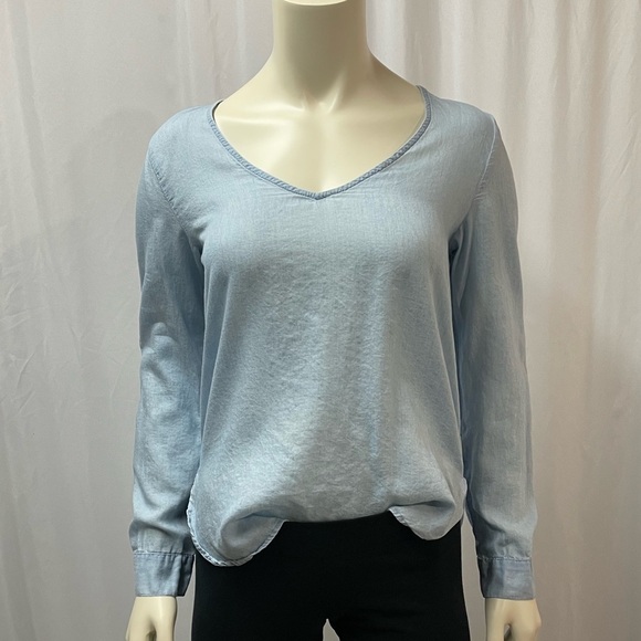 H&M Lightweight Chambray Blouse, Baby Blue, Size 0