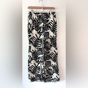 H&M Linen Blend Wide Leg Pants | Black Leaf Print | Small
