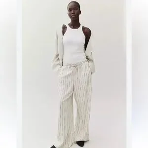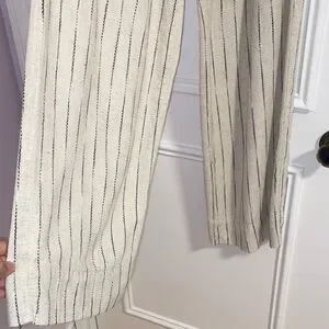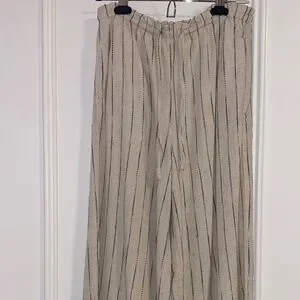 Chic beige pants with black stripes. Perfect for any occasion. Linen blend. Great condition. Tall; can be hemmed