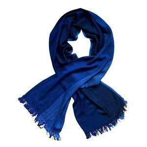 H&M Versatile Long Scarf. Made in India from 100% viscose, featuring four shades of blue and subtle fringes along the hem. Soft and lightweight, it can be wrapped around the neck to showcase its colour variations or tied at the front for a classic look.
