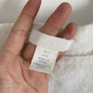 H&M Longsleeve Fuzzy Soft Squareneck Sweater w Puffy Sleeves in White • S Small