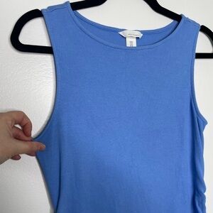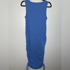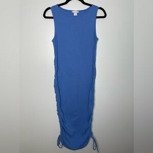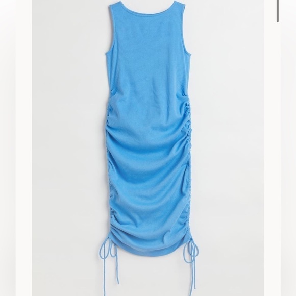 Fitted, sleeveless, knee-length dress in soft, ribbed cotton jersey with a round neckline. Sides with full-length drawstring for a gently draped effect and improved fit over tummy.