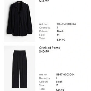 H&M MATCHING CRINKLE SET SIZE MEDIUM BLACK LOUNGEWEAR