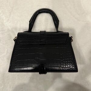 H&M MINI CLUTCH HANDBAG BLACK FAUX PATENT LEATHER