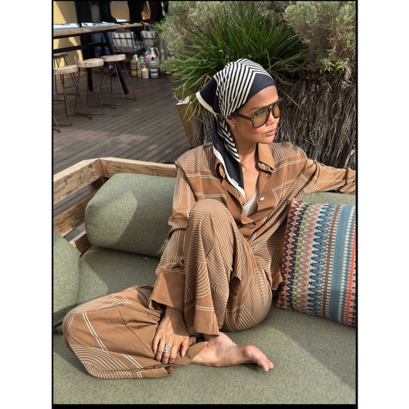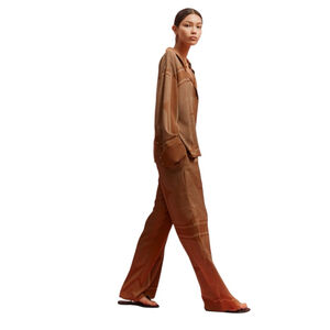 Straight-leg pants in woven fabric. High waist with covered elastic at back and a concealed zipper at one side.