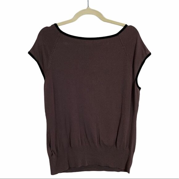 Super cute H&M sleeveless sweater. Beautiful muted mauve colour. Black accent bows on front pocket. Can’t remember the size. Please see photos for measurements. Great condition with minor wash wear.