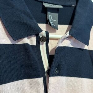 H&M Men’s Polo Shirt Medium – Pink & Navy Blue Striped Short Sleeve Rugby Style