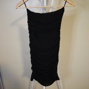H&M Strapless Tube Dress in Black Mesh. Size Four. Features mini length, strapless, ruched detail on front, mesh layered fabric. Fits true to size.