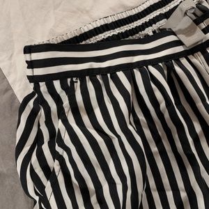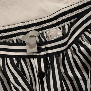 like new (worn once) H&M midi skirt, navy blue and white stripes, has pockets, button closure along the front