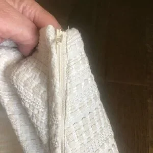 This is a sweet winter white woven mini skirt. Lined. Zipper at side. In great condition.