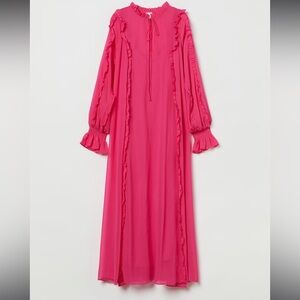 H&M modest Longsleeve ruffles maxi dress in hot Pink