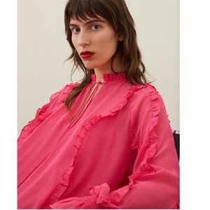 H&M Modest Chiffon Maxi Dress Cerise Pink A-Line Long Sleeve Ruffles XS