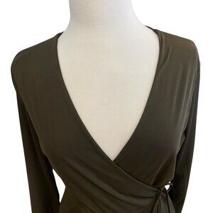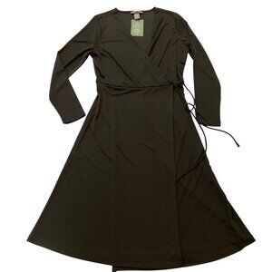 H&M NWT Maroon Brown Long-Sleeve Wrap Dress Silky Jersey Fabric Knee Length Wome