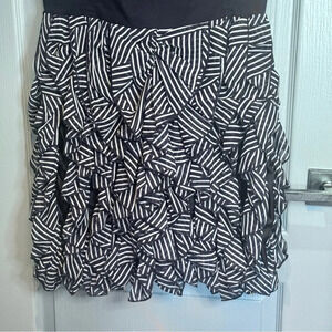 This nautical geometric H&M dress is perfect for formal, prom, cocktail, and other party occasions. It features a sweetheart neckline bodice and a all over striped print ruffled skirt, in a navy and white colourway. The bodice features a stretchy back for comfort, along with adjustable straps.