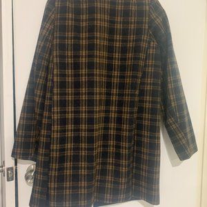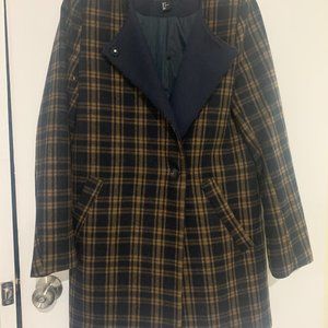 H&M Navy Blue & Yellow Wool Blend Plaid Coat - Size 6