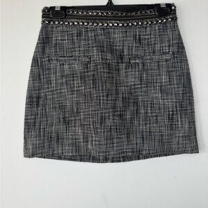 H&M Navy Tweed Mini Skirt with Embellished Waist – Size 6