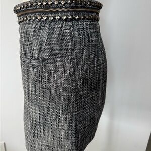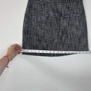 Chic and timeless navy tweed mini skirt from H&M, featuring a stunning beaded trim around the waist for an elegant touch. Perfect for dressing up or down – pair it with tights and boots in the fall or a crisp blouse for a polished look.