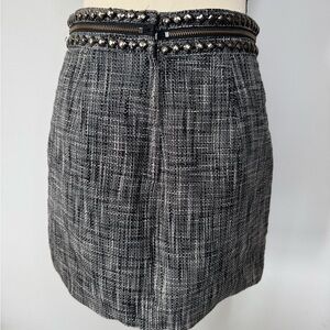 H&M Navy Tweed Mini Skirt with Embellished Waist – Size 6