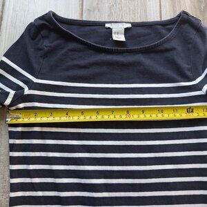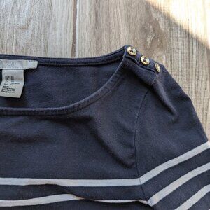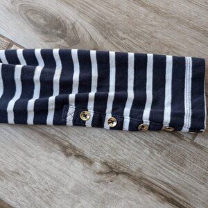 H&M Navy White Striped Long Sleeve Shirt Women’s XS Boatneck Gold Buttons