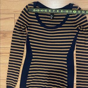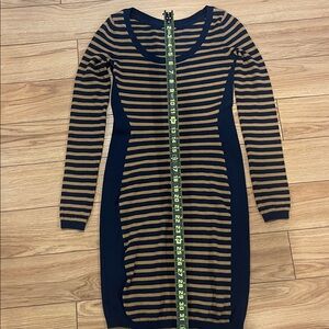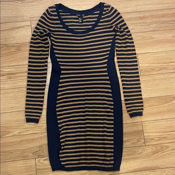 H&M Navy and Brown Striped Long Sleeve Dress xs