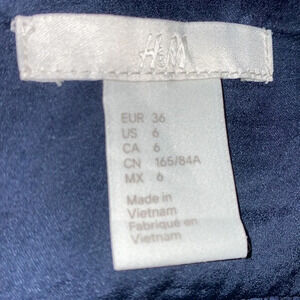 H&M Navy blue VNeck high low cuffed sleeve blouse