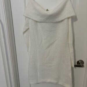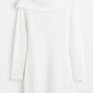 Short, fitted off-the-shoulder dress in a soft, fluffy knit. Foldover upper edge, long sleeves, and a straight hem.
