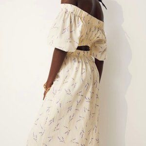 H&M Off The Shoulder Balloon Sleeve Floral Organic Cotton Midi Dress Sz S NWT