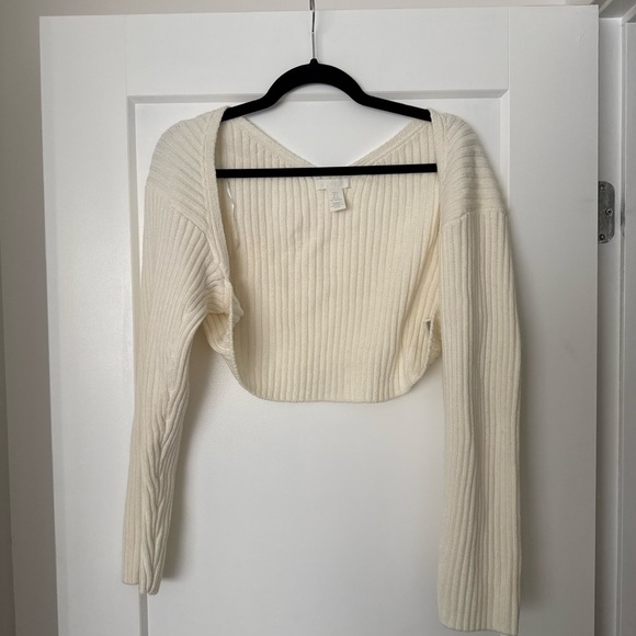 H&M Off-White Ribbed Knit Shoulder Cardigan