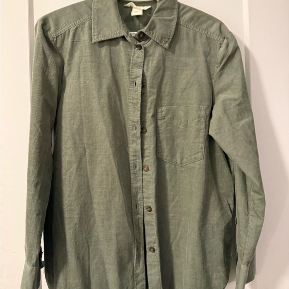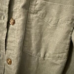 Olive corduroy shirt with a soft texture. Features a classic design. Ideal for versatile styling.