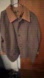 Stylish olive utility jacket. Features corduroy collar and cuffs. Perfect for versatile wear.