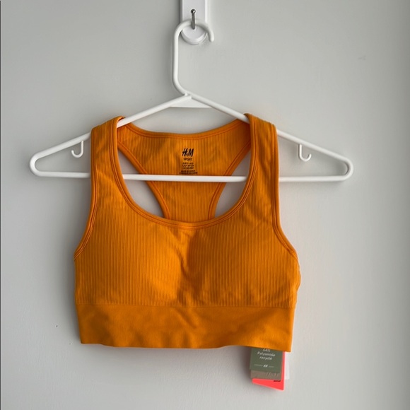 Vibrant orange ribbed sports bra by H&M. Perfect for workouts.