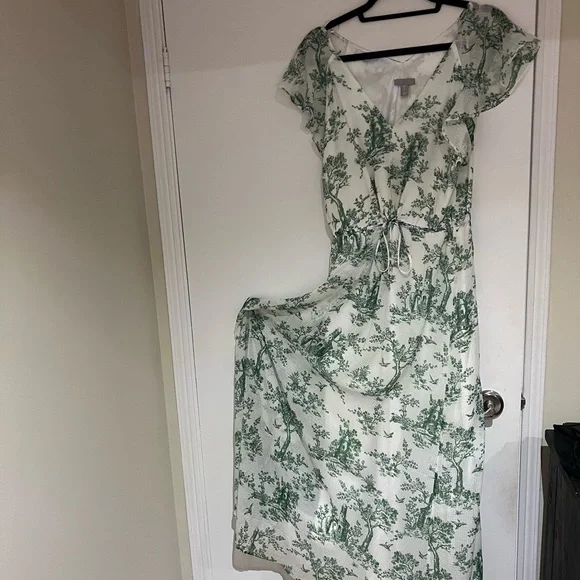A dress from H&M with beautiful tree patterns. Very flattering V-neck line and sleeves. Adjustable waste band. Flows great with the wind. Great dress for summer days and vacations