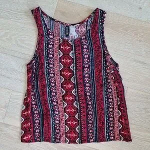 Bright red, blue, black and white multi-pattern tank top