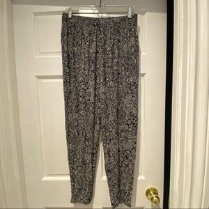 Filigree patterned pants. Cinched at the ankles. Like new without tags.