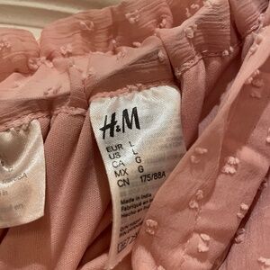 This chic pink mini skirt from H&M features a playful bubble style with tiered ruffles, perfect for a night out or cocktail event. The soft, muted pink hue adds a touch of romance, while the lightweight fabric ensures a comfortable fit. Its high-waisted design and elastic waistband provide a flattering silhouette, making it a versatile addition to any wardrobe.