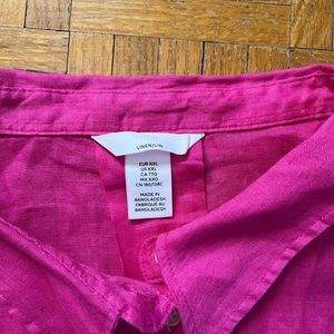 Vibrant pink button down shirt. Relaxed fit with classic collar. Perfect for casual wear.