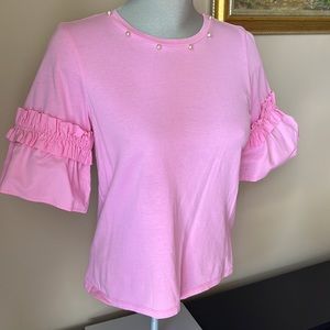 H&M Pink Top with Ruffled Sleeves SIZE XS