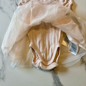 Adorable pink baby dress with a short sleeve bodysuit and a tulle skirt. Perfect for special occasions. Excelled used condition. 6-9 months but sits small so closer to 6 months.