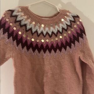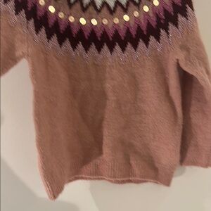 H&M Pink and White Crew Neck Sweater with Nordic Pattern