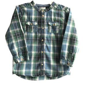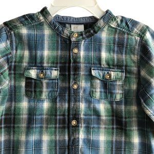 H&M Plaid Band Collar Henley Button Cotton Shirt