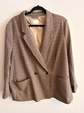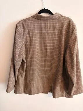 Structured single breasted blazer with notch lapels. Smooth, matte fabric for a sleek finish. Two front pockets and button closure. Clean, versatile piece for work or dressed-up looks.