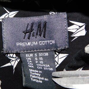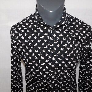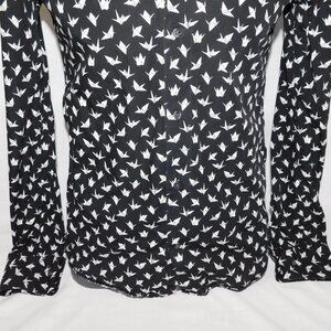 This Mens Small H and M Premium cotton Slim Fit Mens Black White Origami Paper Cranes Pattern Long Sleeve Button Front shirt is in Excellent clean bright condition. Shirt is 100% premium Cotton - Machine wash - Line Dry.