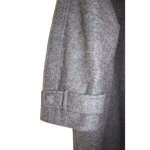 Featuring a point collar, concealed button closure, and button-tab cuffs, it’s fully lined for warmth and structure. Side pockets add function, while the raglan sleeves and relaxed cut create that easy, sculptural shape associated with premium outerwear. The coat measures approximately 44” from shoulder, making it best suited for taller frames or those who enjoy a dramatic, drapey look.