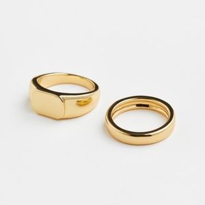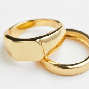 H&M Premium Selection gold plated rings with different designs to wear together or individually. 2 pieces. Size M/L. New with tags.