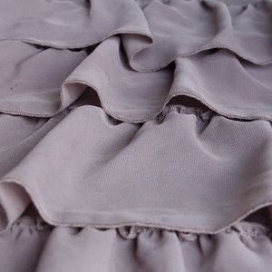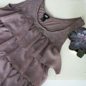 Covered in pretty ruffles, this mauve chiffon top from H&M makes it easy to dress up or down. Pair it with a fitted blazer to achieve a sophisticated look at work. Or with some black skinny jeans for a casual night out with the girls. In great condition.