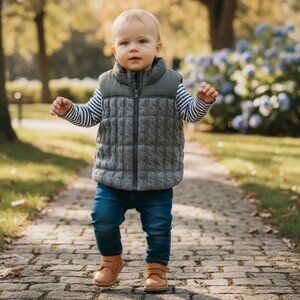 H&M Quilted Cable Knit Padded Zip-Up Vest 12-18 Months