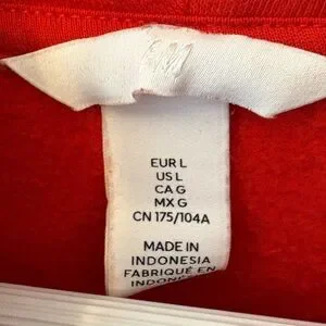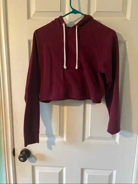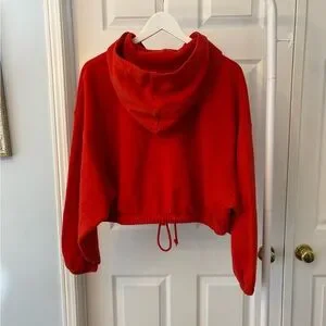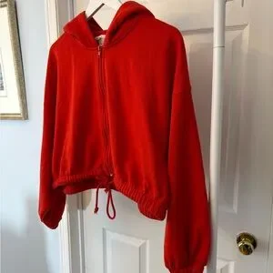 H&M Red Cropped Zip Up Hoodie Size Large Cotton