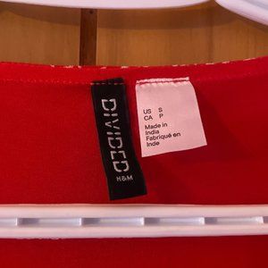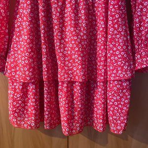 H&M Divided Red Floral Long Sleeve Frilly Chiffon Dress Small