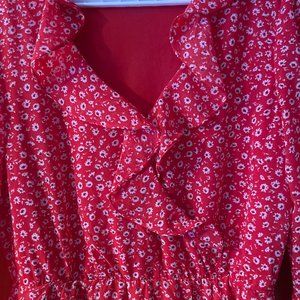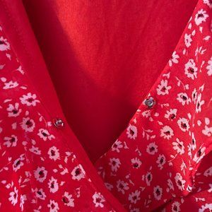 H&M Red Floral Frill Chiffon Dress S